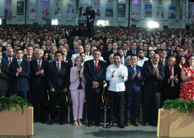El evento, como cada año, reunió a las élites políticas y económicas: empresarios, industriales, comerciantes, legisladores, alcaldes de los 43 municipios, representantes del Poder Judicial encabezados por la magistrada Tania Contreras López, así como invitados federales y de otras entidades. Todo en orden, todo en forma. La institucionalidad, intacta.