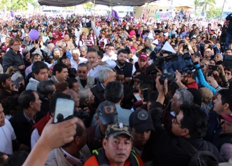 "Estamos enfrentando a una mafia del poder que no quiere dejar de robar, fustigo, no tienen llenadera"; evidenció además, la guerra sucia en su contra y enumero sus propuestas ampliamente conocidas