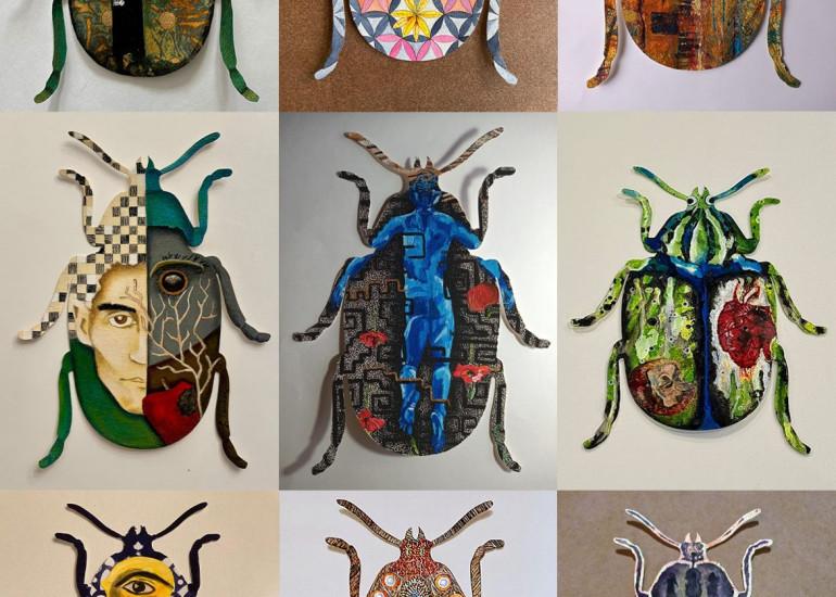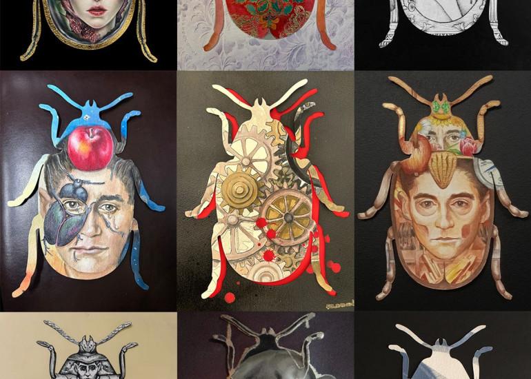 La muestra DE LA IDEA A LA OBRA-METAMORFOSIS-Homenaje Plástico y Gráfico a Kafka, está conformada por 100 escarabajos de papel artístico profesional arches tourchon, los cuales fueron intervenidos en disciplinas plásticas y gráficas con muy variadas técnicas por igual número de artistas de México, Francia, Estados Unidos de Norteamérica y Chile.