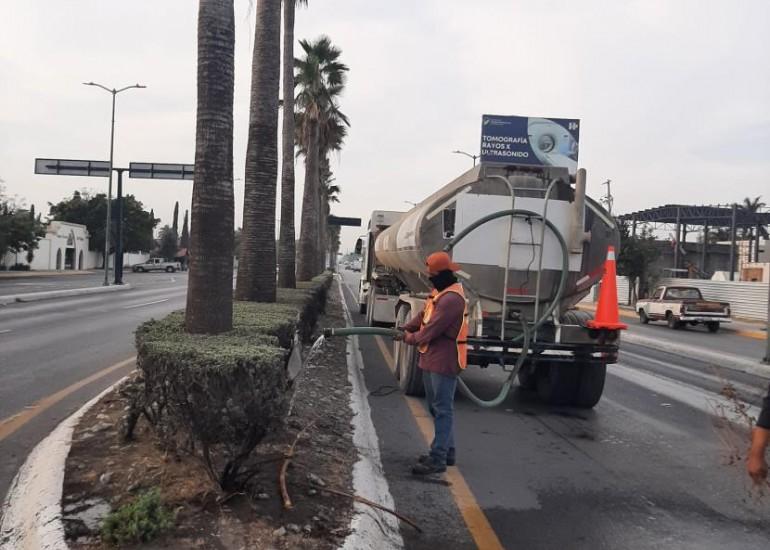 La Secretaría de Obras Públicas puso en marcha un programa emergente para la protección del medio ambiente, mediante el riego de árboles y diferentes plantas que se encuentran en las principales avenidas y espacios públicos de la ciudad.