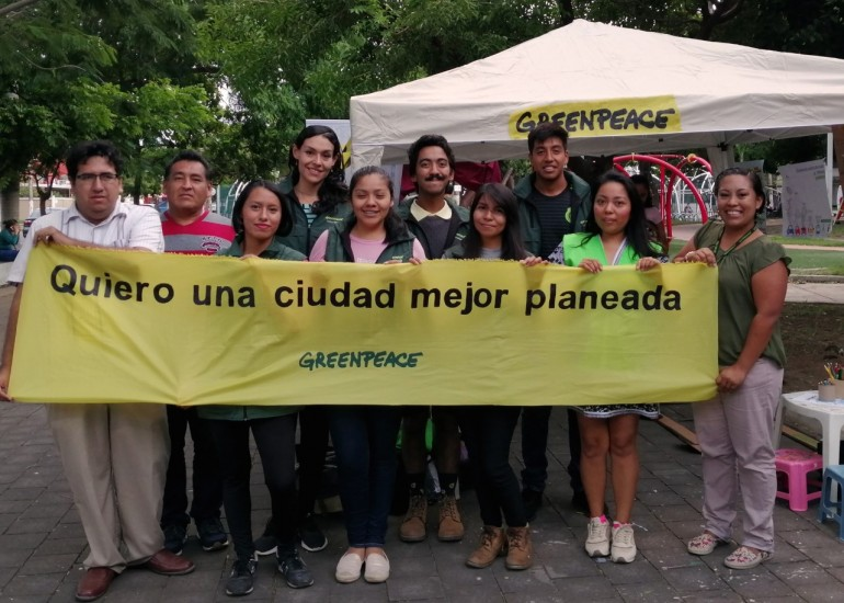 Ciudad de México, 30 de Oct, 2019.- Para conmemorar el Día Mundial de las Ciudades, voluntarias/os de Greenpeace realizaron caminatas, rodadas, ferias en plazas públicas, entre otras actividades en 21 ciudades del país para exigir a las autoridades urbes más equitativas, con un transporte público eficiente y opciones de movilidad que coloquen a la persona en el centro de las decisiones gubernamentales, en lugar del automóvil particular, como ha ocurrido hasta ahora.
