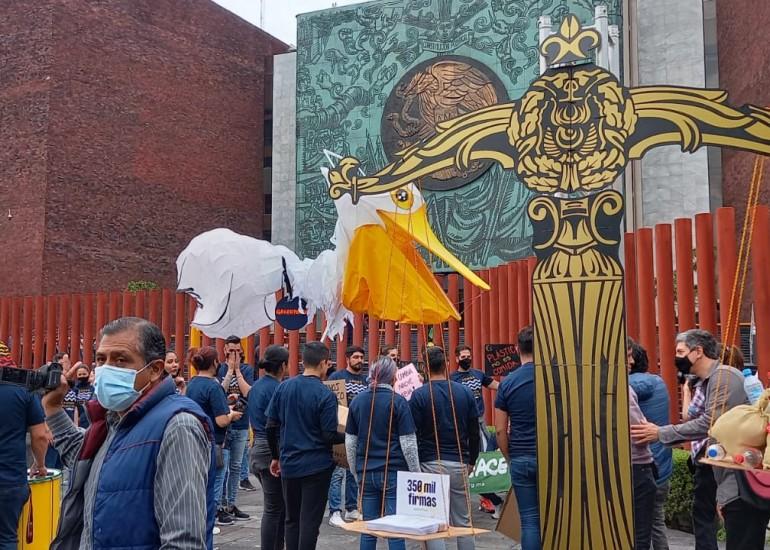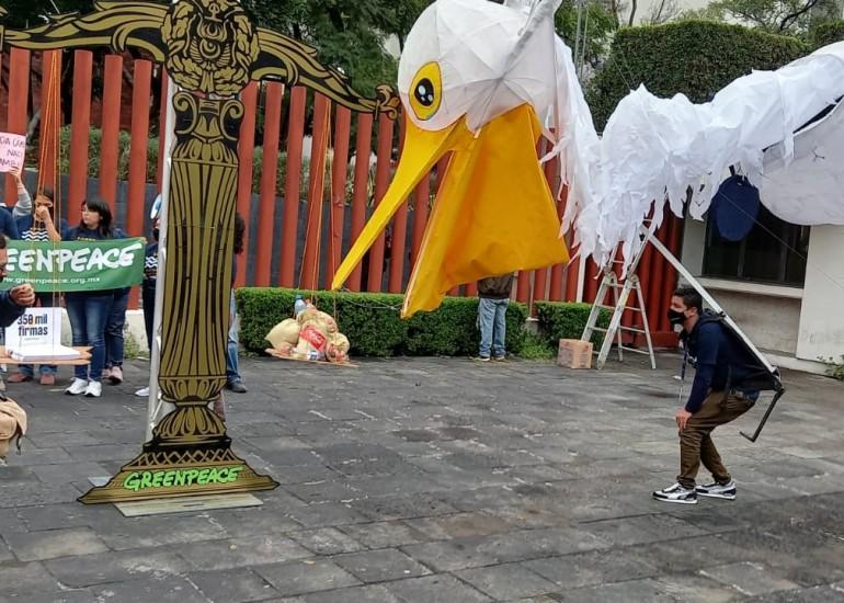 Mediante una protesta pacífica realizada la mañana del martes 18 de octubre, frente al recinto legislativo de San Lázaro, donde se plantaron a gritar consignas de “NO AL PLÁSTICO DE UN SOLO USO, SI AL REUSO” llamando también a las y los Legisladores a actuar con conciencia para la protección y cuidado del medioambiente. Acompañadas de Teo, un pelícano de más de 3 metros de altura, que representa la urgencia para la protección de los ecosistemas costeros del país, los cuales están fuertemente afectados por la contaminación de residuos plásticos.