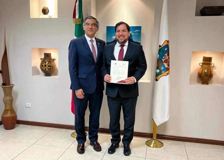 El gobernador, hizo entrega del nombramiento al nuevo funcionario, que tiene sus oficinas en el Centro Internacional de Negocios (Cintermex).