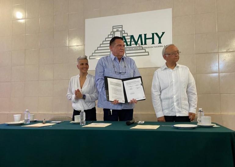 Para ello, la AMHY, A.C. que preside Juan José Martín Pacheco y la Asociación Mexicana en Movimiento por la Salud, A.C, (AMEMOS) representada por Eleazar Lara Padilla firmaron un convenio de colaboración, para realizar cursos de primeros a la industria hotelera en Yucatán, por gestión de la diputada federal Federica Quijano.