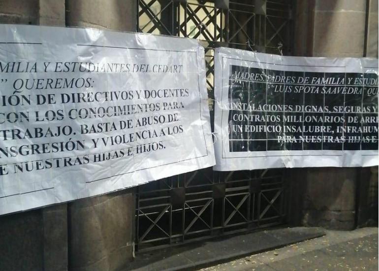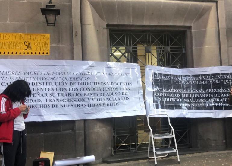 Protestan estudiantes acompañados de sus madres, padres y tutores del CEDART "Luis Spota Saavedra"