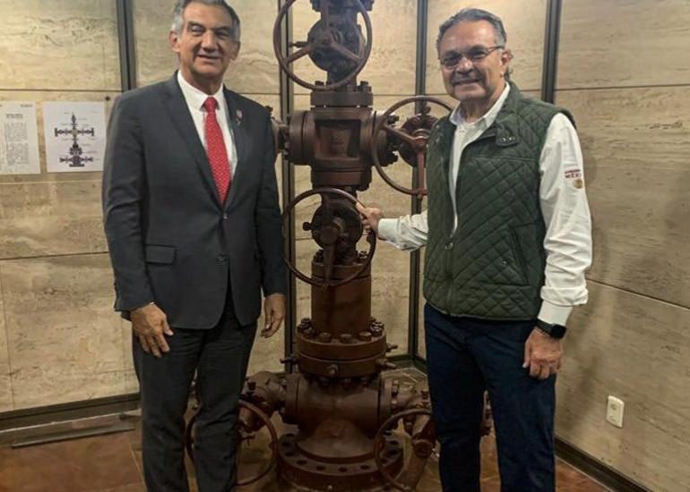 Ciudad de México.- Dando seguimiento a los proyectos estratégicos del estado de Tamaulipas en materia energética, el gobernador Américo Villarreal Anaya, junto al secretario estatal del ramo, José Ramón Silva Arizabalo, se reunieron con el director general de PEMEX, Octavio Romero Oropeza, de quien se obtuvo la autorización para que una planta de fertilizantes sea construída en el norte y enseguida otra en el sur de la entidad.