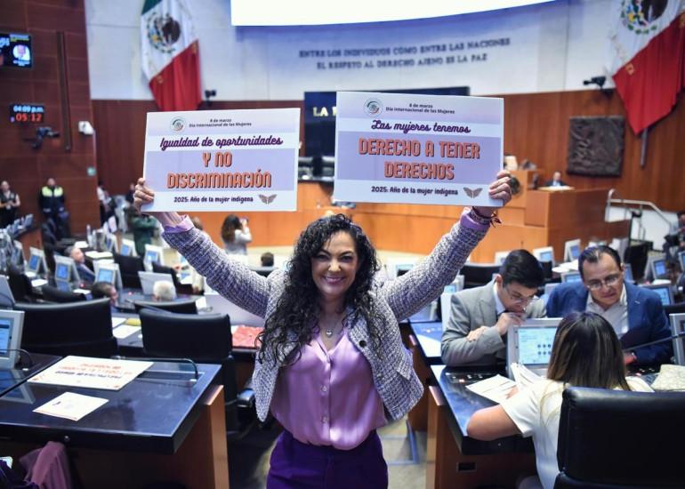 En este día de gran relevancia para México, la legisladora subrayó "que nadie nos diga que no podemos, las mujeres ya llegamos, llegamos todas, sobre todo las indígenas y afromexicanas, no vamos a claudicar en nuestra lucha por los derechos hasta que la igualdad se haga costumbre.”
