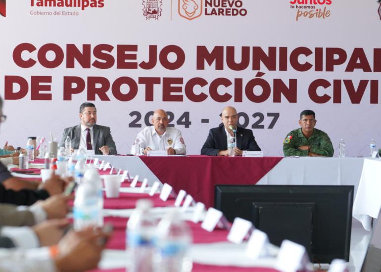 La instalación del consejo fue presidida por Juan Ángel Martínez Salazar, secretario del Ayuntamiento y secretario Ejecutivo del Consejo, quien estuvo acompañado de Humberto Fernández Diez de Pinos, director de Protección Civil y secretario Técnico del Consejo; Gabriel Solórzano Pérez, regidor y presidente de la Comisión de Protección Civil y Bomberos; y el mayor Javier Niño Zúñiga, representante de la Guarnición Militar de la Plaza de Nuevo Laredo.
