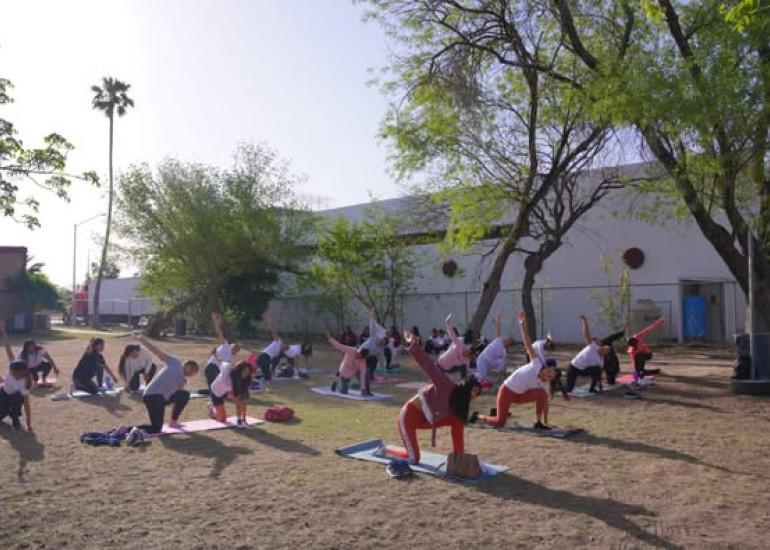 Decenas de jóvenes participaron este fin de semana en la actividad “Yoga para Chavas”, organizada por el Instituto Municipal para el Desarrollo de la Juventud (IMJUVE), en la Casa de la Cultura Viveros.