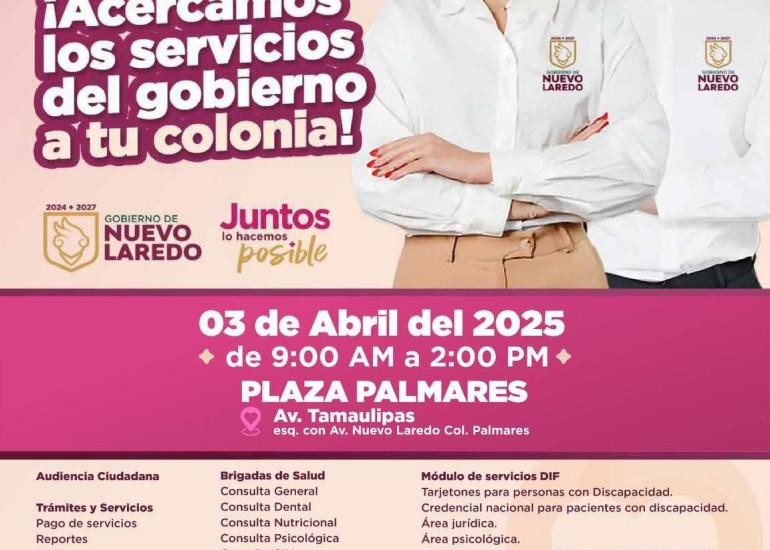 Todo está listo para que este jueves 3 abril, vecinos de la colonia Palmares, accedan a todos los beneficios, trámites y servicios del Gobierno Municipal a través del programa Presidencia Cerquita de Ti, que se instalará en la plaza ubicada en Ave. Tamaulipas esquina con Nuevo Laredo, de esta colonia.