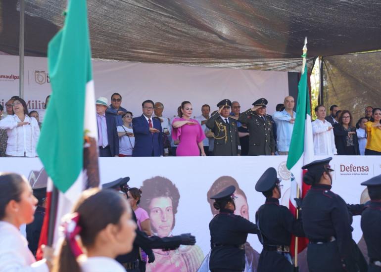 “Muy contenta de ver a las escuelas participar, con gran entusiasmo, y de poder apoyarlos. Hoy hubo una muy buena coordinación junto con el Ejército, trabajando todos por México. Nuestra presidenta de la República está dignificando nuestro país y desde Nuevo Laredo reiteramos nuestro respaldo, fortaleciendo nuestras instituciones y espacios”, expresó la alcaldesa.
