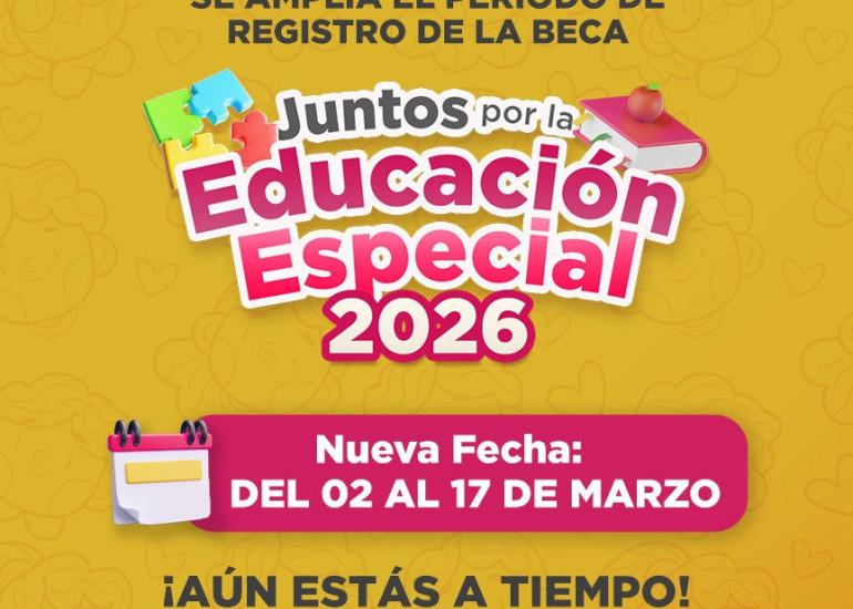 AMPLÍA GOBIERNO MUNICIPAL PLAZO PARA REGISTRO A LA BECA “JUNTOS POR LA EDUCACIÓN ESPECIAL 2026