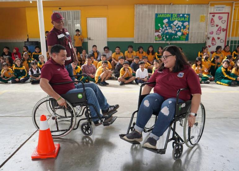 Durante la actividad, alumnas, alumnos y maestros realizan recorridos utilizando sillas de ruedas, andadores, muletas o bastón, así como ejercicios con los ojos vendados, con el objetivo de generar empatía y comprensión sobre las barreras físicas y sociales que existen en la vida cotidiana.