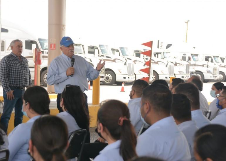 Nuevo Laredo, Tam.- Dentro de su gira por este puerto fronterizo, el más importante del sector comercial en Latinoamérica, César Truko Verástegui sostuvo un encuentro con operadores y empresarios del autotransporte, rubro particularmente importante en esta frontera por su impacto en la vida económica.