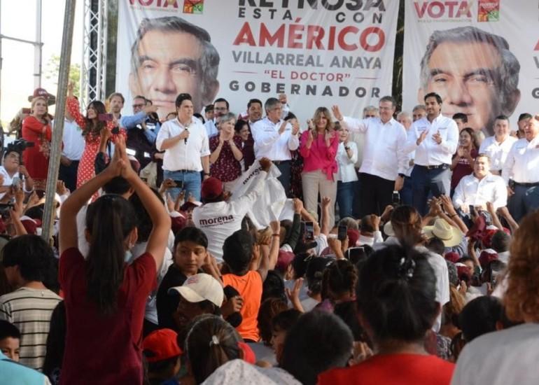 “Ahora va a tener la posibilidad por decisión de ustedes, porque el pueblo es el que manda, de que Tamaulipas se una a la Cuarta Transformación que está cambiando la vida nacional…Américo éxito, triunfo, que saques adelante a Tamaulipas, cuenten con nosotros”, indicó Ebrard para dar paso al grito de ‘gobernador…gobernador’.