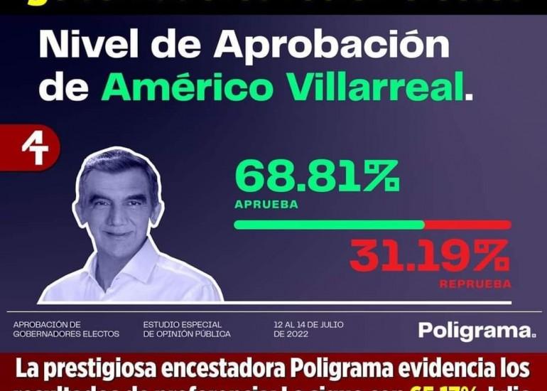 El gobernador electo de Tamaulipas, Américo Villarreal Anaya, es quien cuenta con la mayor aprobación entre los mandatarios que ganaron sus respectivas elecciones en el proceso de 2022, de acuerdo con la encuesta más reciente de Poligrama.