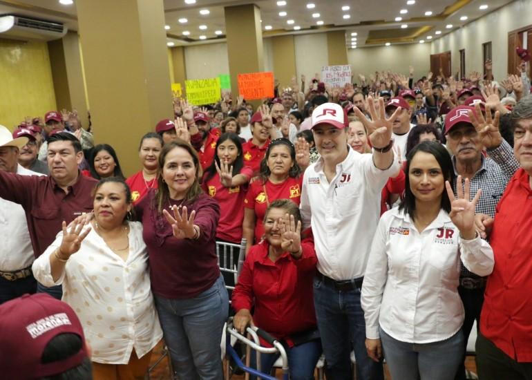 En Soto La Marina, el candidato JR de Morena y PT, fue sorprendido con el ingenio y talento del señor Efrain Hernández, quien le compuso un corrido, que entonó frente a los más de 300 asistentes al encuentro con militantes en ese municipio.