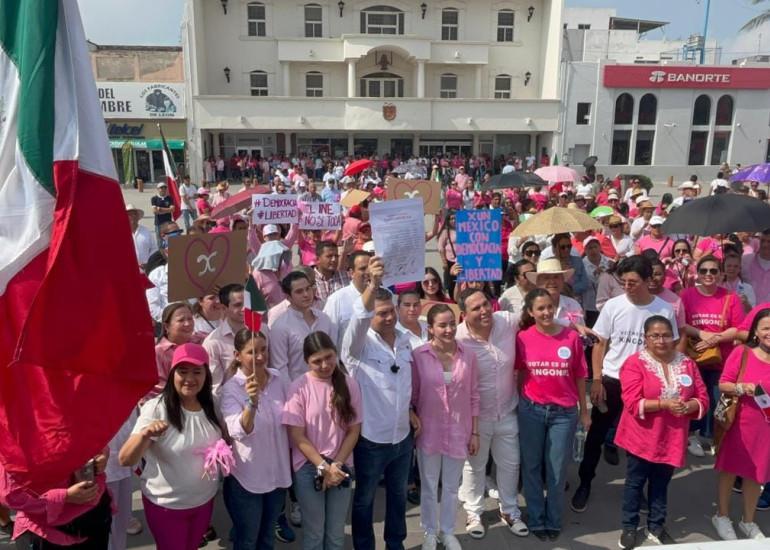 Marcha la marea rosa en Reynosa por la democracia de México