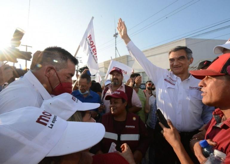En su segundo día de campaña, los nuevolaredenses demostraron su cariño y respaldo al doctor Américo Villarreal que cerró su agenda con este pegoteo y fiesta en las calles de la ciudad.