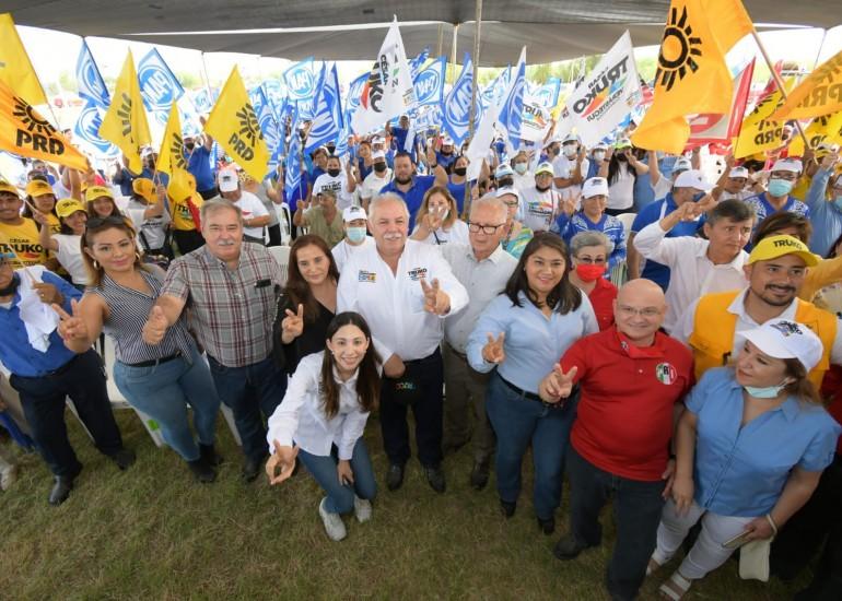 Camargo, Tam.- El potencial de la frontera tamaulipeca es inmenso, por lo que para César Truko Verástegui, candidato por los partidos Acción Nacional, Revolucionario Institucional y de la Revolución Democrática, es fundamental generar las condiciones que consoliden su vocación industrial, comercial y agrícola.