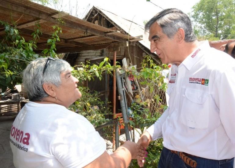El Carmen, municipio de Güémez.- Aquí, en sus casas, con las puertas abiertas, las familias recibieron al doctor Américo Villarreal Anaya, candidato morenista en su larga caminata de varios kilómetros, que terminó entre aplausos y aclamado por los cientos de paseantes que se bañaban en las aguas del Vertedor, el paseo favorito de esta región citrícola.