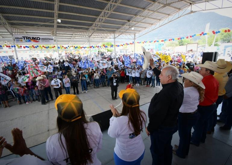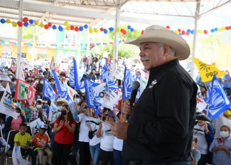 Miquihuana, Tamaulipas.- En la plaza principal de Miquihuana municipio ubicado en el suroeste del estado, llegó el candidato de la coalición “Va por Tamaulipas” César Truko Verástegui donde reafirmó su orgullo de pertenecer a este sector que le ha permitido conocer su problemática.