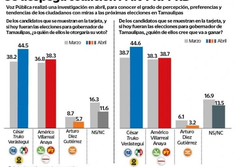 Cd. Victoria, Tam.- A tres días de realizarse el debate entre candidatos a la gubernatura de Tamaulipas, el abanderado de la Coalición “Va por Tamaulipas” César Truko Verástegui se posicionó como el contendiente que suma la mayoría de las preferencias electorales, de acuerdo a un sondeo de opinión realizado por Voz Pública.
