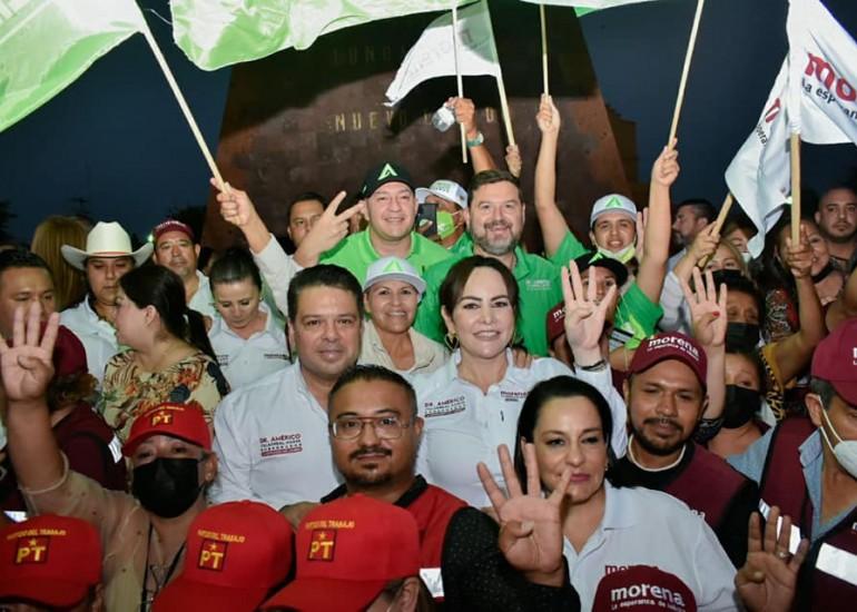 Nuevo Laredo, Tam. - Gobierno de liderazgo, honesto, austero, capaz y sobretodo con un profundo amor por Tamaulipas, ofrece el doctor Américo Villarreal Anaya candidato por la coalición "Juntos Hacemos Historia", Movimiento de Regeneración Nacional (MORENA), Partido del Trabajo (PT) y el Partido Verde Ecologista de México (PVEM), quién claramente fue el ganador del primer debate entre los aspirantes a la gubernatura del estado.A pesar de las descalificaciones sin fundamentos por parte de los candidatos César “El Truko” Verástegui, de PRIAN y Arturo Diez, de Movimiento Ciudadano (MC), el doctor Américo Villarreal Anaya mostró madurez y se mantuvo firme presentando las propuestas que sacarán adelante a Tamaulipas como es traer mayor inversión al estado, mejor educación, crear más fuentes de trabajo para mujeres y jóvenes recién egresados, además de brindar paz, prosperidad y seguridad a las familias tamaulipecas.El debate se pudo ver en vivo dentro de las instalaciones del Centro Cívico de Nuevo Laredo, en medio de un ambiente de júbilo y esperanza. En el lugar estuvieron siguiendo la transmisión el licenciado Oscar Mario Hinojosa Ramírez, enlace municipal de la campaña en Nuevo Laredo del doctor Américo Villarreal, acompañado de su esposa la licenciada Carmen Lilia Canturosas Villarreal, primera morenista de la ciudad, así como simpatizantes del candidato de la coalición 'Juntos Hacemos Historia', quienes no tardaron en expresar su opinión.
