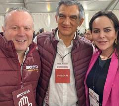 Américo Villarreal y Carlos Canturosas se reencuentran durante evento del Congreso Nacional de Morena en la CDMX.