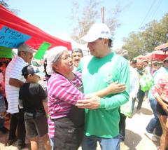 Reciben Olga Sosa y JR, respaldo de comerciantes en mercado rodante de Soto la Marina