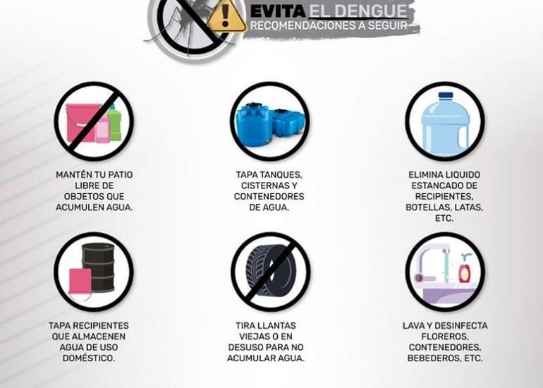 Entre las medidas a tomar contra su reproducción una de las más importantes es la eliminación de cacharros y botes, cubetas, u otros recipientes en desuso, del patio y del interior de las viviendas, así como tapar cisternas, tinacos y recipientes en los que se almacene agua.Lava, tapa, voltea y tira, los recipientes útiles y no útiles, para evitar la propagación de enfermedades como el Dengue y hacer de Reynosa una ciudad con seguridad sanitaria para todos; participa desde tu hogar y confina adecuadamente la basura.