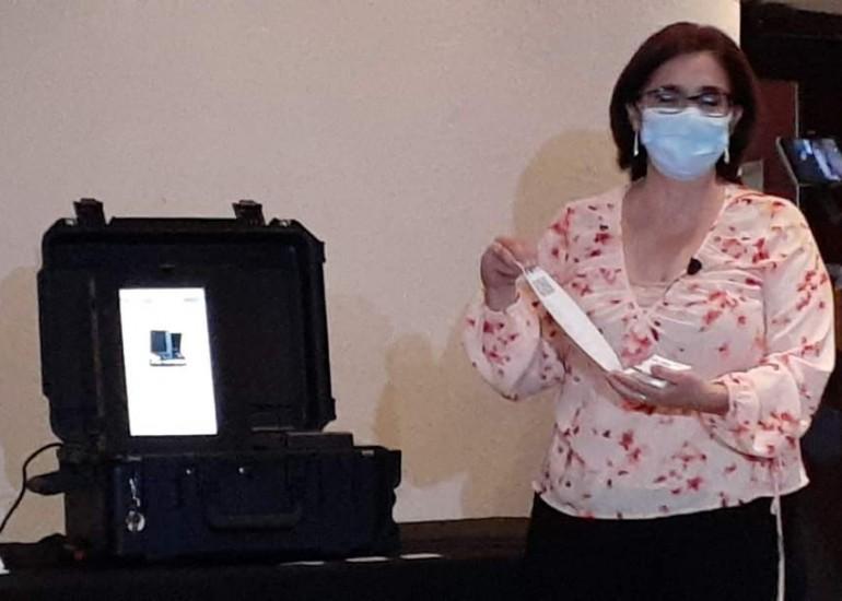 En Coahuila ya se ha implementado el voto electrónico, por lo que Gabriela de León Farías, presidenta consejera en ese estado, realizó la presentación de este proceso, el cual es muy rápido y eficiente.