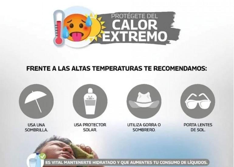 De acuerdo al pronóstico del Servicio Meteorológico Nacional, la temperatura ambiente podría llegar e incluso superar los 40 Centígrados en esta localidad, por lo cual la primera de las recomendaciones es no exponerse por tiempo prolongado a los rayos solares.