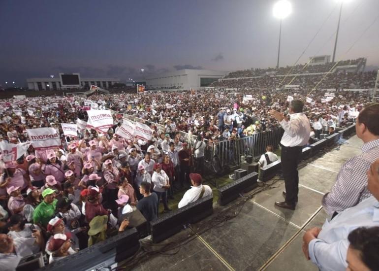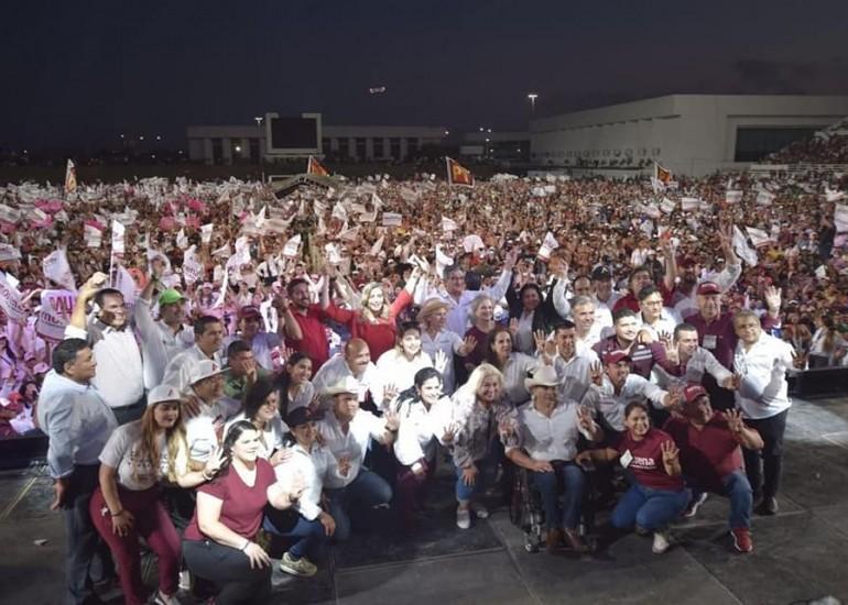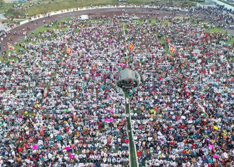 Ante una histórica concentración de más de 30 mil personas en el Polideportivo de esta ciudad, en su quinto cierre regional de campaña, el candidato de Morena, PVEM y PT a la gubernatura convocó a salir a votar masivamente para recoger la gran cosecha que se ha sembrado a lo largo de esta campaña.