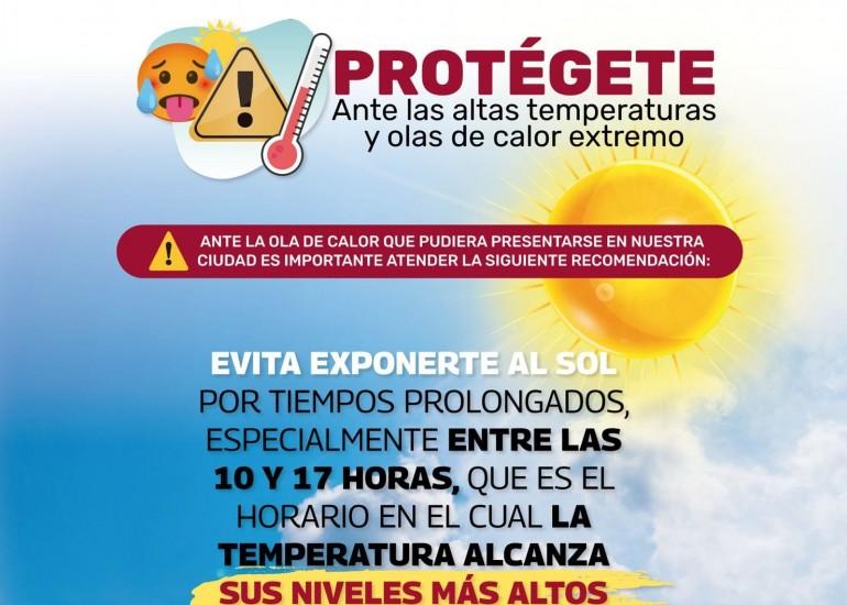 El Gobierno Municipal de Reynosa, por medio de la Coordinación de Protección Civil y Bomberos, alerta a la población sobre una nueva onda cálida, que a partir del día viernes 10 de junio causará calor extremo en la región, por lo cual se recomienda tomar las medidas necesarias para evitar problemas de salud.