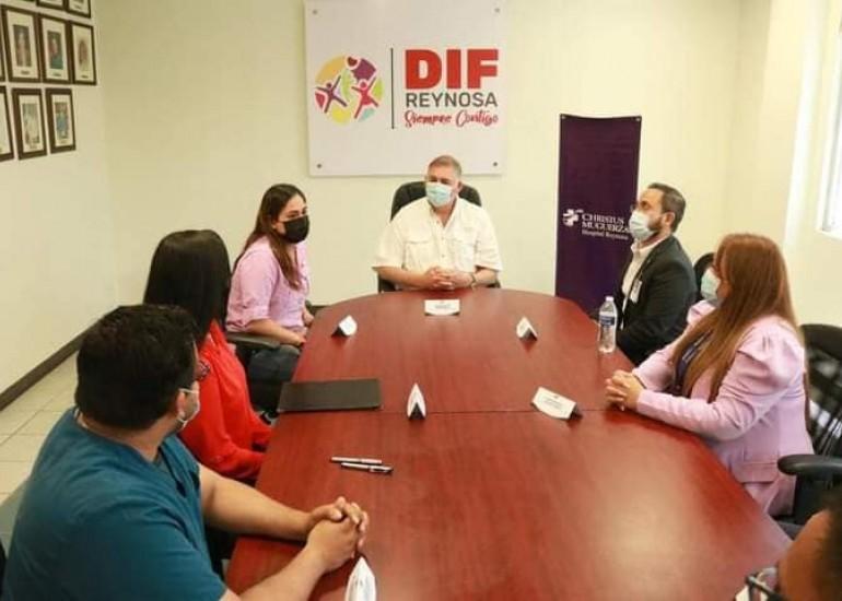 A fin de unir esfuerzos para apoyar a las familias de escasos recursos, por instrucciones del Alcalde suplente, José Alfonso Peña Rodríguez, el Sistema DIF Reynosa firmó convenio de colaboración con el Hospital Christus Muguerza.