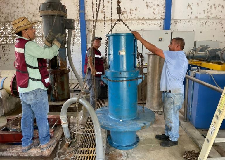 Por lo anterior, cuadrillas del organismo introdujeron dicha bomba sumergible al pozo a 98 metros de profundidad, con un motor vertical de 159 caballos de fuerza y que bombeará 400 litros por segundo.