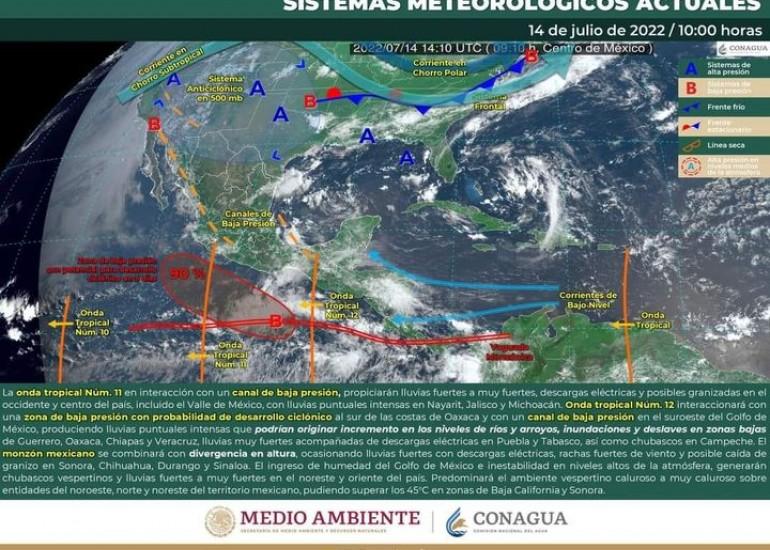 Con información proveniente del Servicio Meteorológico Nacional, se previene que existe un 15% de posibilidades de que se registren lluvias esta tarde.
