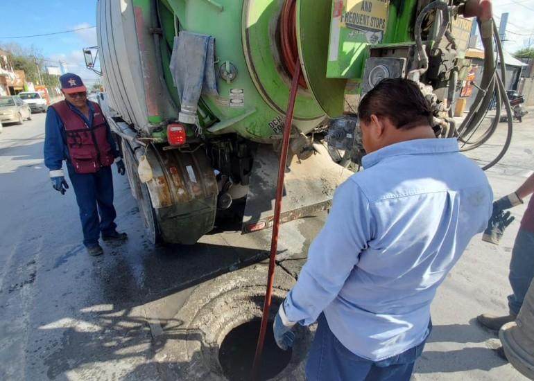 En respuesta oportuna a reportes de usuarios, la Comisión Municipal de Agua Potable y Alcantarillado de Reynosa llevó a cabo labores de mantenimiento en los pozos de visita de la avenida 20 de Noviembre en el fraccionamiento Reynosa.
