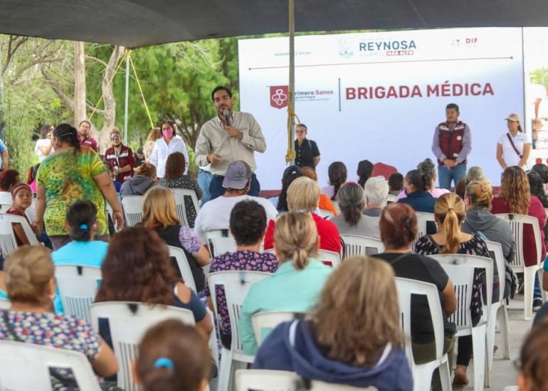 Con la asistencia de más de 400 vecinos del Fraccionamiento Reynosa, el Presidente Municipal, Carlos Peña Ortiz, encabezó la Brigada Médica "Primero Sanos", con la cual las familias recibieron una cálida atención de salud de más de 800 servicios que brindaron los médicos del R. Ayuntamiento de nuestra ciudad, además de que fueron entregados bastones y sillas de ruedas.