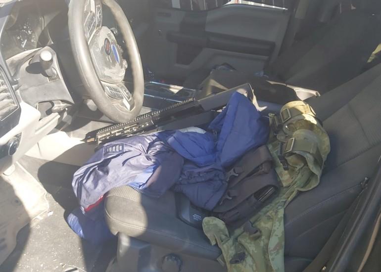 Encuentran vehículo con equipo táctico, armamento y ponchallantas