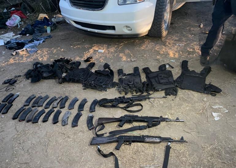 Asimismo, fue asegurado su contenido interior: seis chalecos tácticos balísticos, siete fornituras con porta cargadores, una piernera con porta cargadores, tres armas de fuego, 63 cargadores para arma de fuego y mil 598 cartuchos hábiles para arma de fuego.