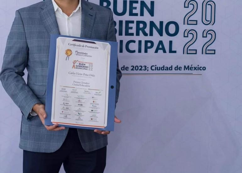 Recibió Carlos Peña Ortiz recibió Premio Nacional al "Buen Gobierno Municipal 2022"