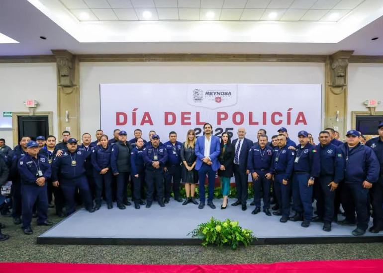 Más de 500 Policías locales, estatales y federales recibieron un cálido homenaje por parte del Gobierno Municipal de Reynosa, al celebrar su día, este viernes 31 de enero.