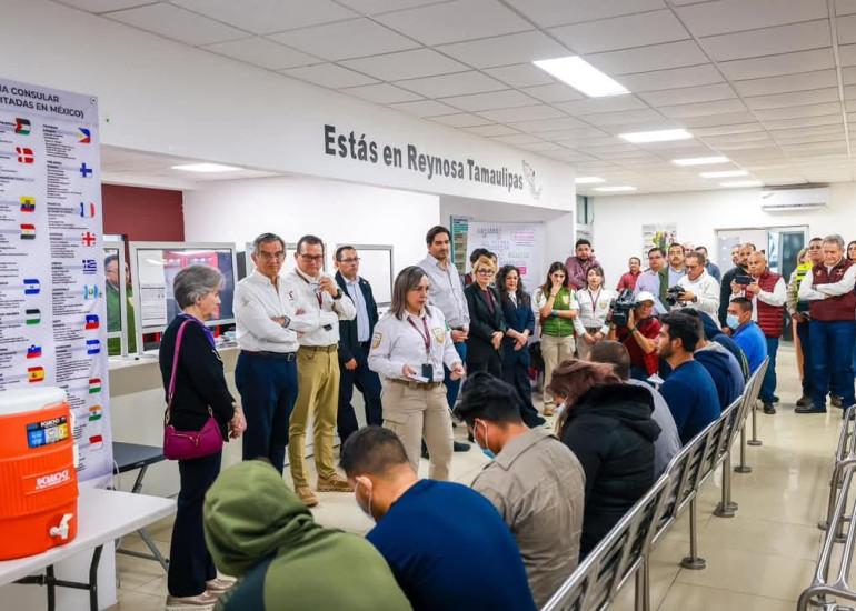 El Alcalde Carlos Peña Ortiz, junto al Gobernador Constitucional de Tamaulipas, Dr. Américo Villarreal Anaya y la Doctora María Santiago de Villarreal, Presidenta del DIF-Tamaulipas, realizó una visita a las instalaciones del Instituto Nacional de Migración con el objetivo de dar la bienvenida a los connacionales repatriados.