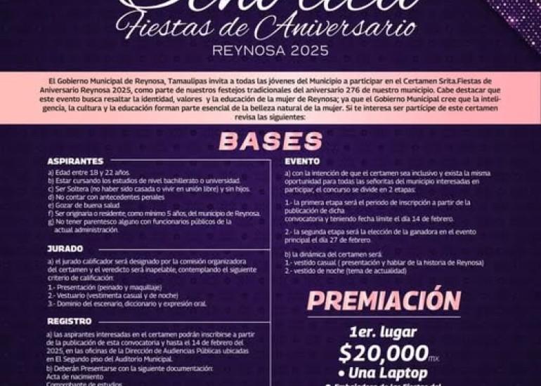 Si quieres ser la Señorita Fiestas de Aniversario Reynosa 2025 conoce las Bases y participa