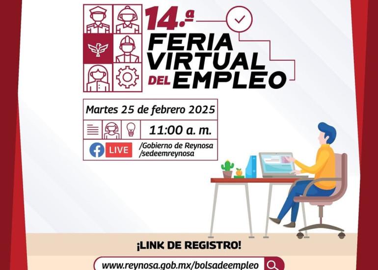 El Alcalde Carlos Peña Ortiz invita a través de la Secretaría de Desarrollo Económico y del Empleo a participar en la 14° Feria Virtual de Empleo, este martes 25 de febrero a partir de las 11:00 de la mañana a través de Facebook Live.