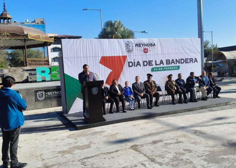 En el marco de la celebración del Día de la Bandera en Reynosa, el gobierno municipal en el acto protocolario que se realiza año con año, se abandero a 22 escuelas desde preescolar hasta preparatoria.