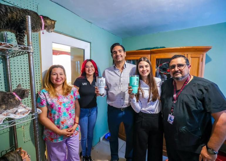 El Alcalde, Carlos Peña Ortiz y la Presidenta del Voluntariado DIF-Reynosa, Alejandra Yelitza Garza, entregaron costales de croquetas, cobijas y productos de limpieza a La Casita de los Michis A.C., un refugio dedicado al cuidado y rescate de gatitos de la calle.