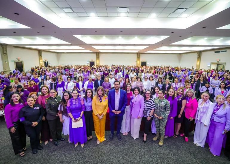 En conmemoración del Día Internacional de la Mujer, reunido con 700 de ellas, el Alcalde Carlos Peña Ortiz presidió un evento que, este sábado 8 de marzo, rindió tributo a todas las reynosenses, un día emblemático que celebra a quienes luchan por sus derechos, la igualdad de género y su acertada participación en todos los ámbitos de la sociedad, con la presencia de la Senadora Maki Esther Ortiz Domínguez, las Diputadas Federales Claudia Alejandra Hernández Sáenz y Olga Juliana Elizondo Guerra; las panelistas, Elba Cabral Paloalto, Directora de la escuela primaria Ignacio Ramírez; la emprendedora Diana Montes Alarcón; Frida Paoletti Leyva, Procuradora de Protección de Niños, Niñas y Adolescentes del DIF-Reynosa.